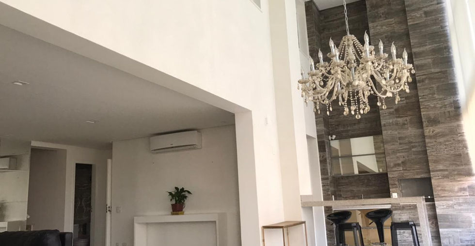 Sala para 4 ambientes (sala de estar, sala de TV, sala de jantar, sacada com churrasqueira a carvão e lavado).